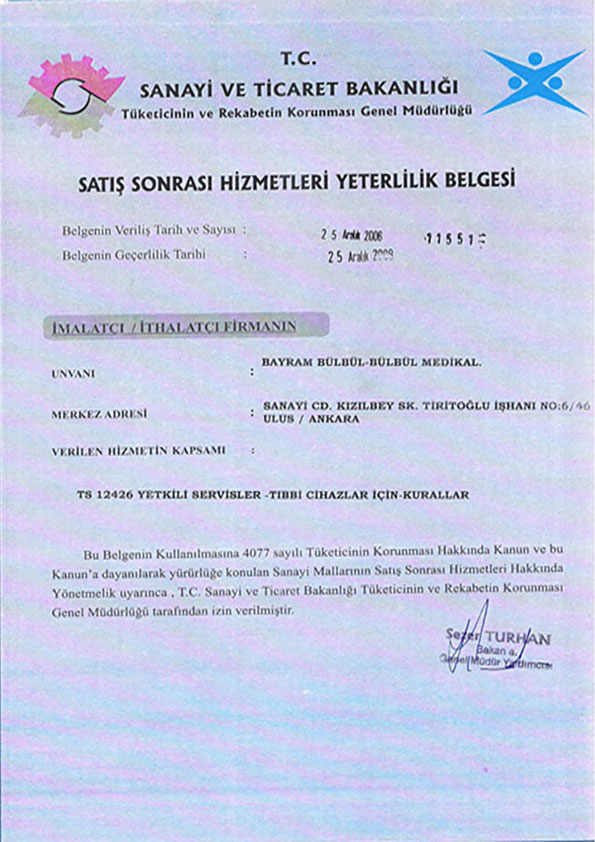 Satış Sonrası Yeterlilik Belgesi
